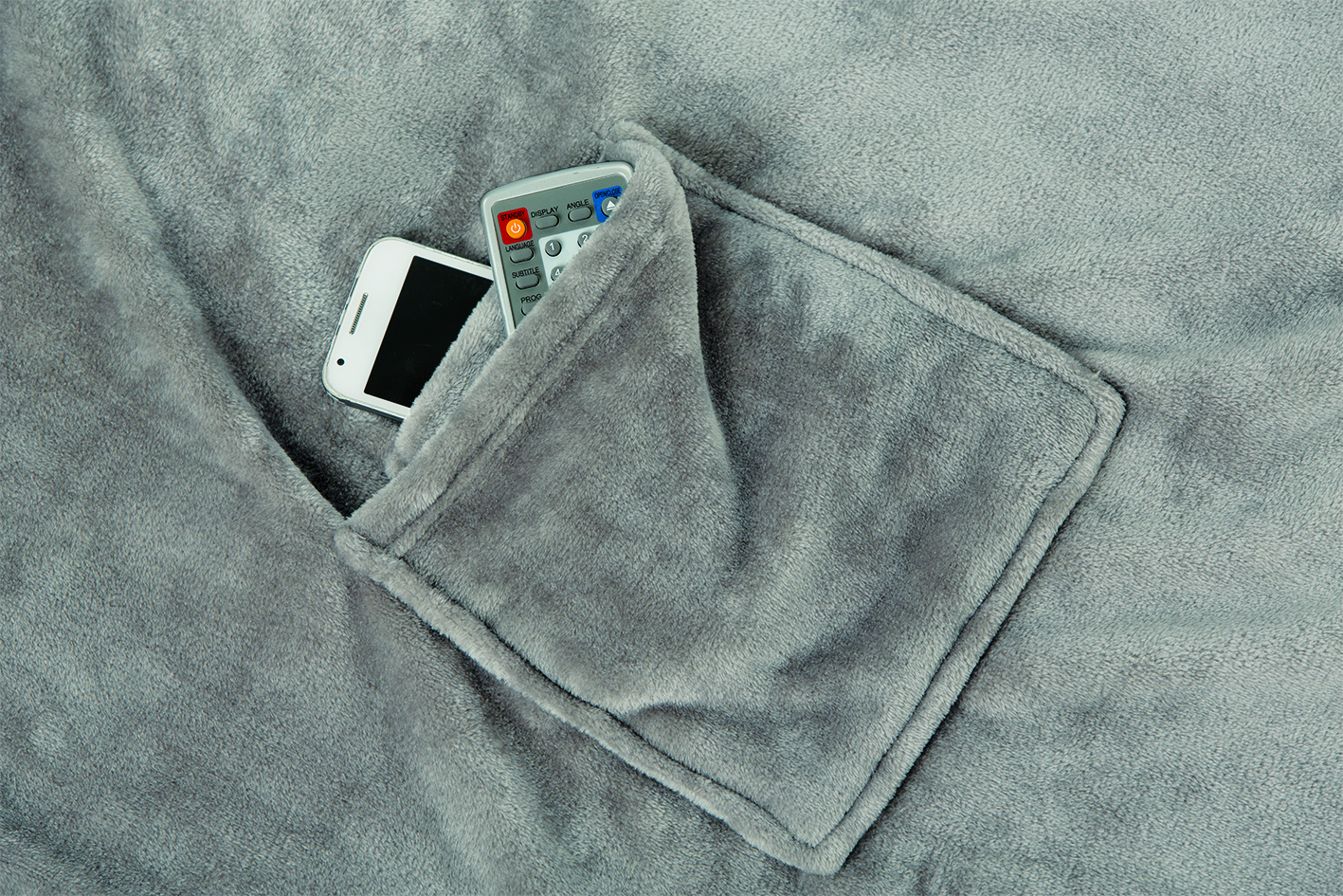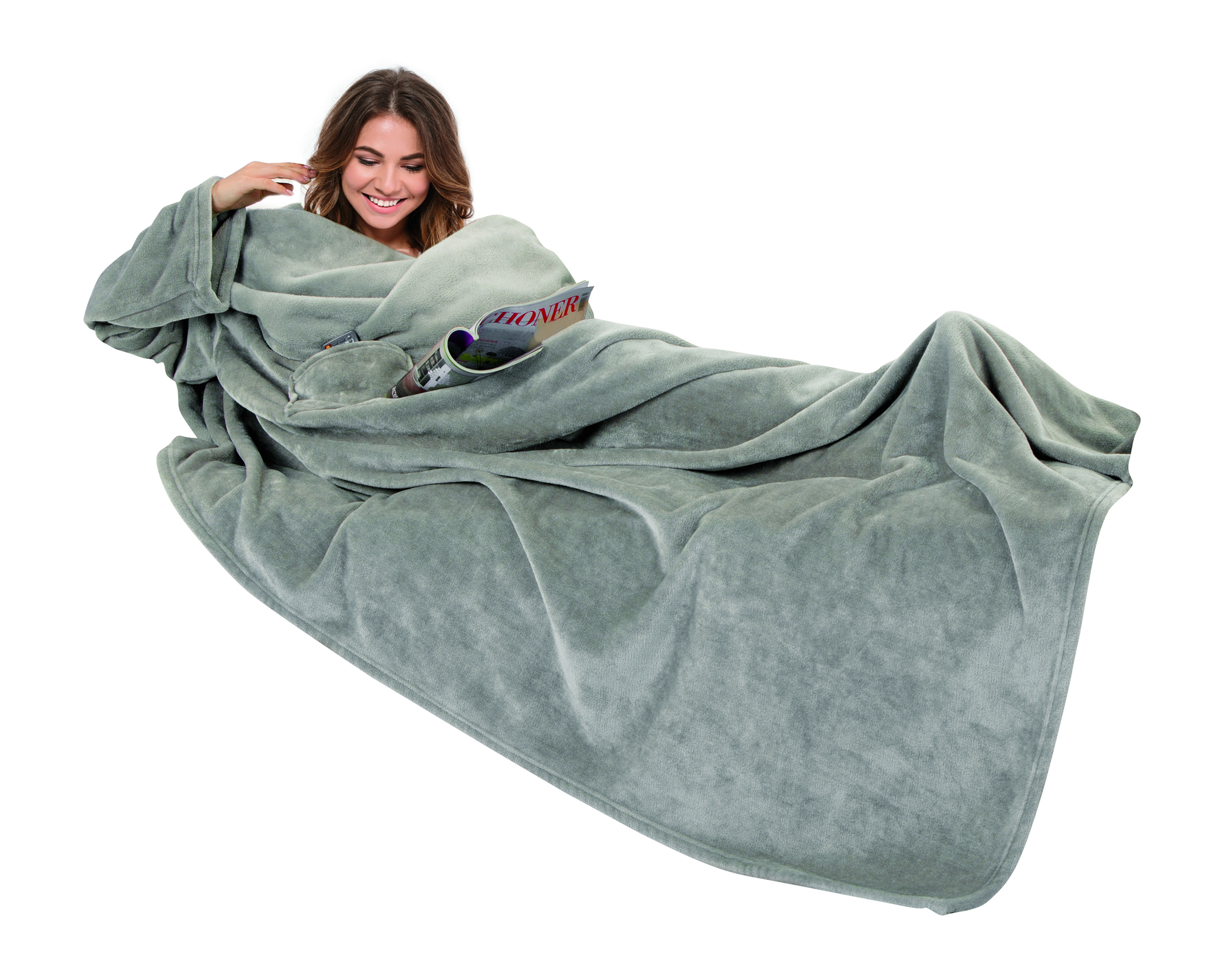 Flauschige Kuscheldecke mit Ärmel (150 x 240 cm). Ideal zum Einkuscheln auf dem Sofa für gemütliche Fernsehabende. Einfaches Einhüllen durch großzügige Ärmel. Die Decke bietet dank der Brusttasche ausreichend Platz für das Handy, eine Fernbedienung und vieles Weitere.