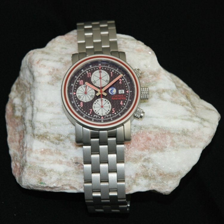 schwarz-rotem Carbon mit roten Tritium-Leuchtziffern und drei
