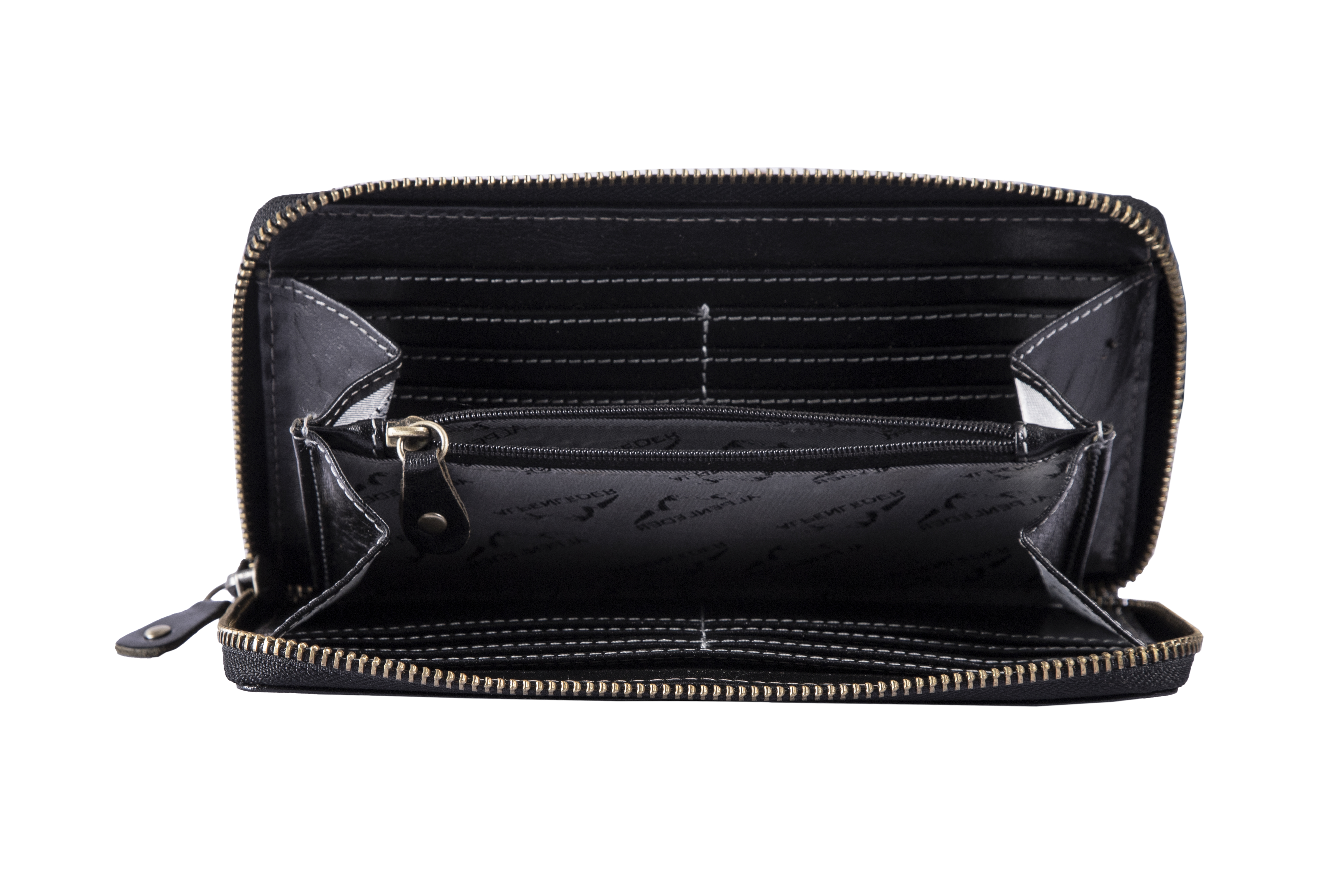 Die wunderschöne und praktische Damengeldbörse "EDELWEISS" bietet viel Platz. Dazu befinden sich innen 12 Kartensteckfächer und ein Münzfach mit Reißverschluss, und das alles sicher verschlossen mit einem dreiseitigen Reißverschluss. An der Rückseite befindet sich ein zusätzliches Einsteckfach.