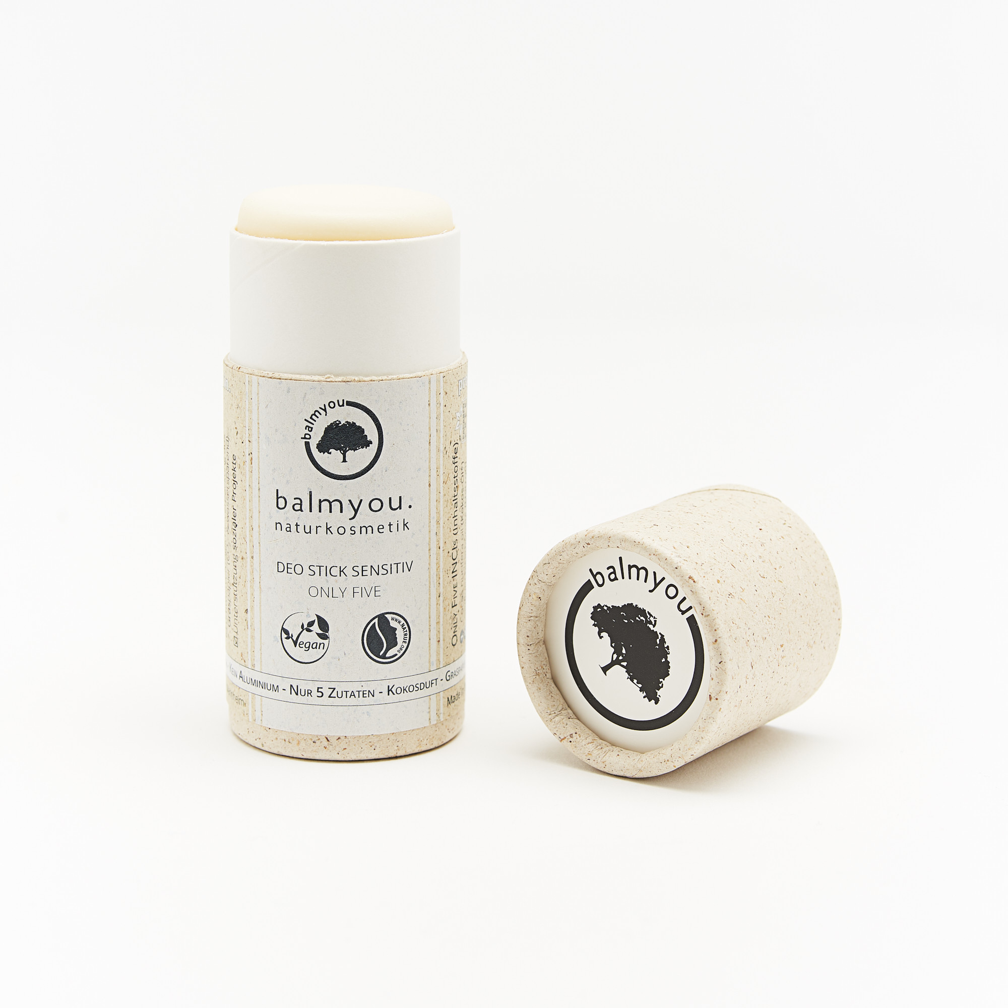 Die Wirksamkeit der balmyou Naturdeos basiert auf Natron, welches unangenehme Geruchsbildung verhindert. Auf Aluminiumsalze und Alkohol wird bewusst verzichtet, um die Haut nicht zu reizen und atmen zu lassen. Daher kann der Deo Stick auch nach der Rasur angewendet werden.