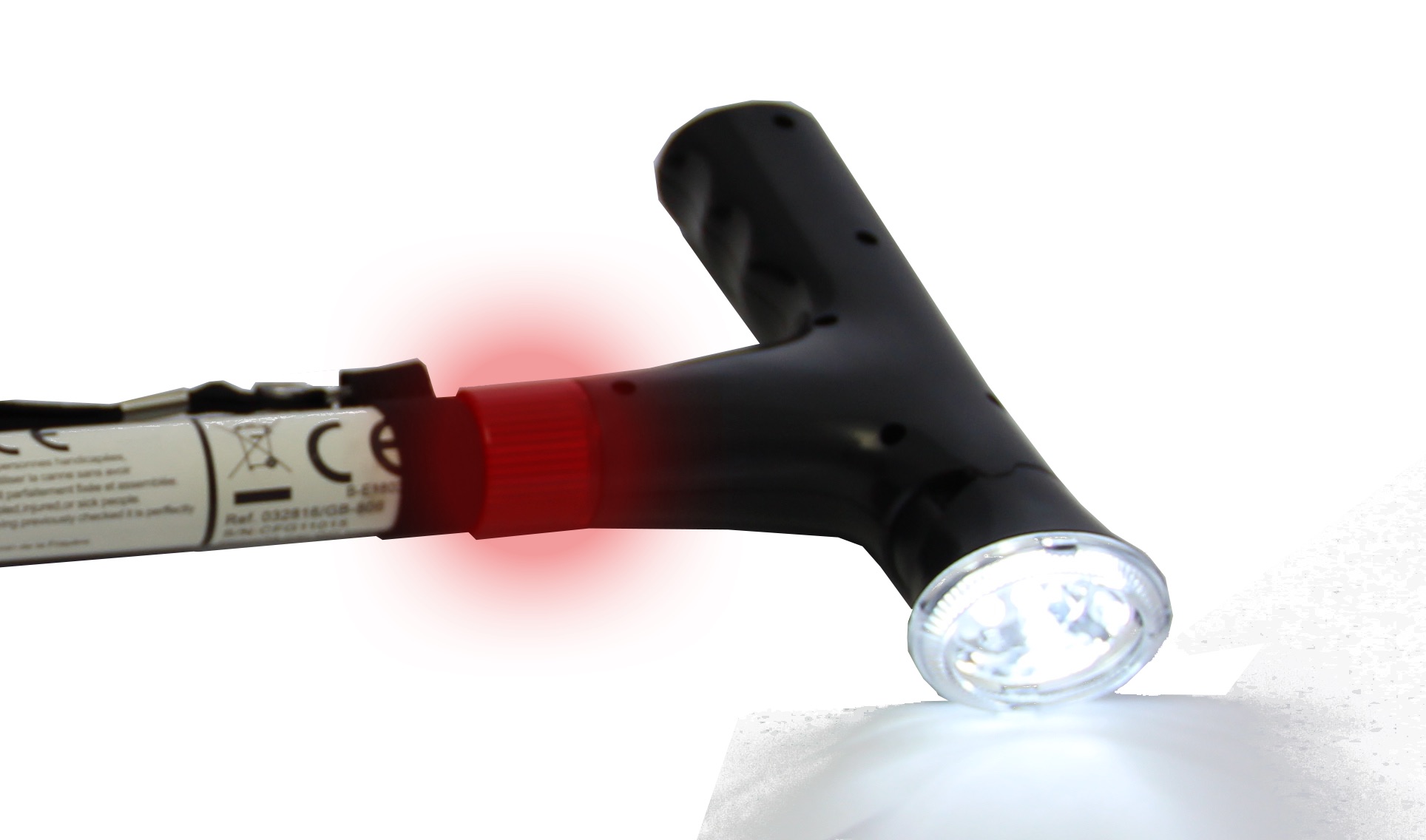Der Gehstock verfügt über zwei zusätzliche Sicherheitsfunktionen: