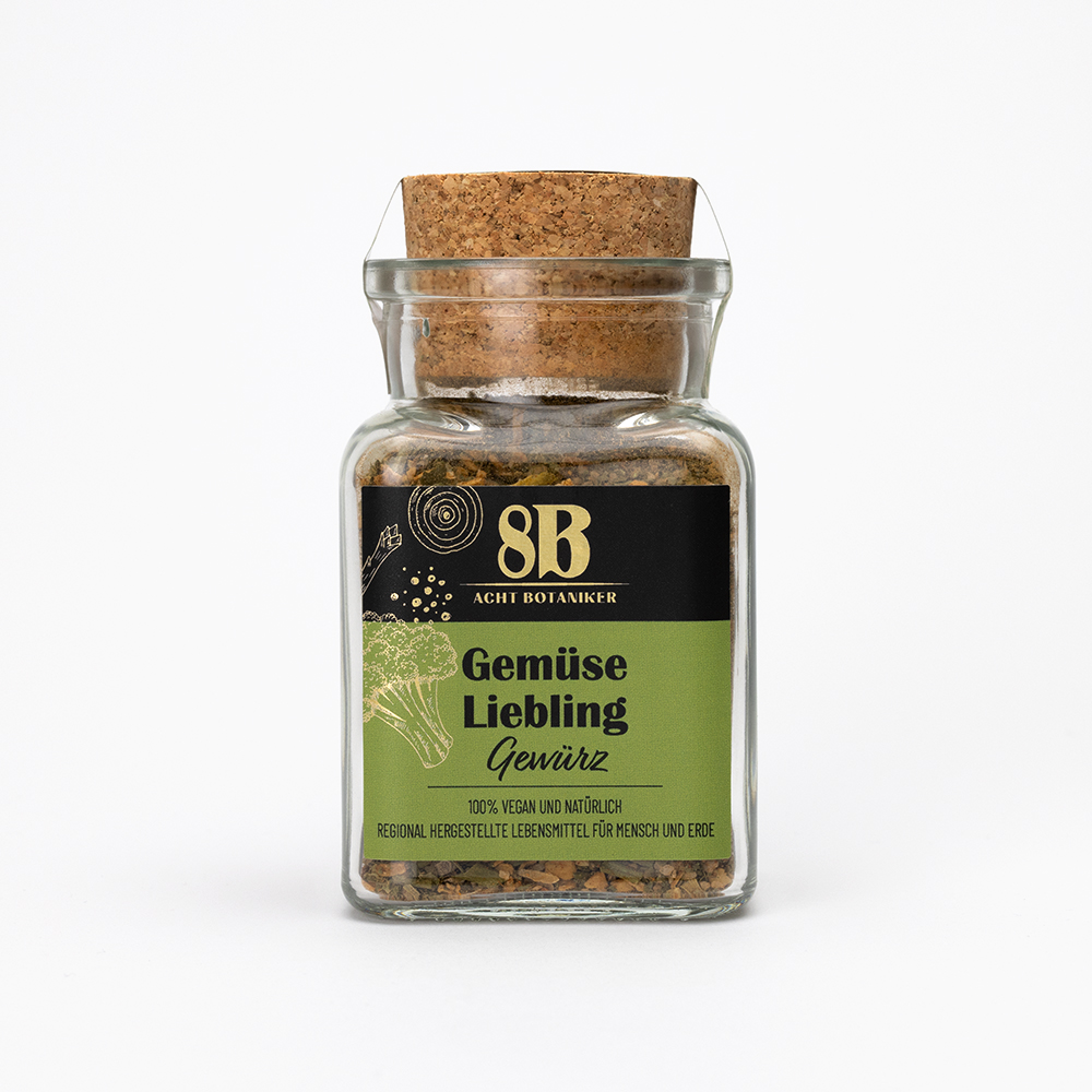Geben Sie Ihrem Gemüse den letzten Schliff mit der 8B Gewürzmischung Gemüseliebling. 100% natürliche Gewürzmischung ohne Zusätze.
