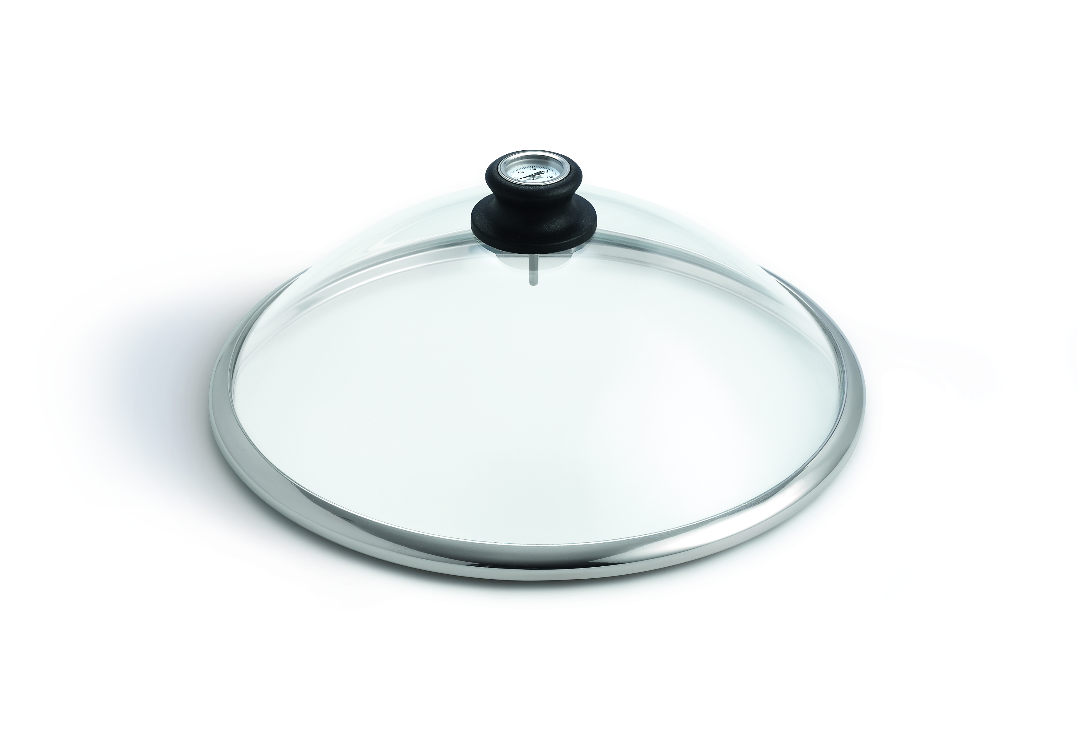 des LotusGrill aufgesetzt. Durch das Glas kann das Grillgut jederzeit