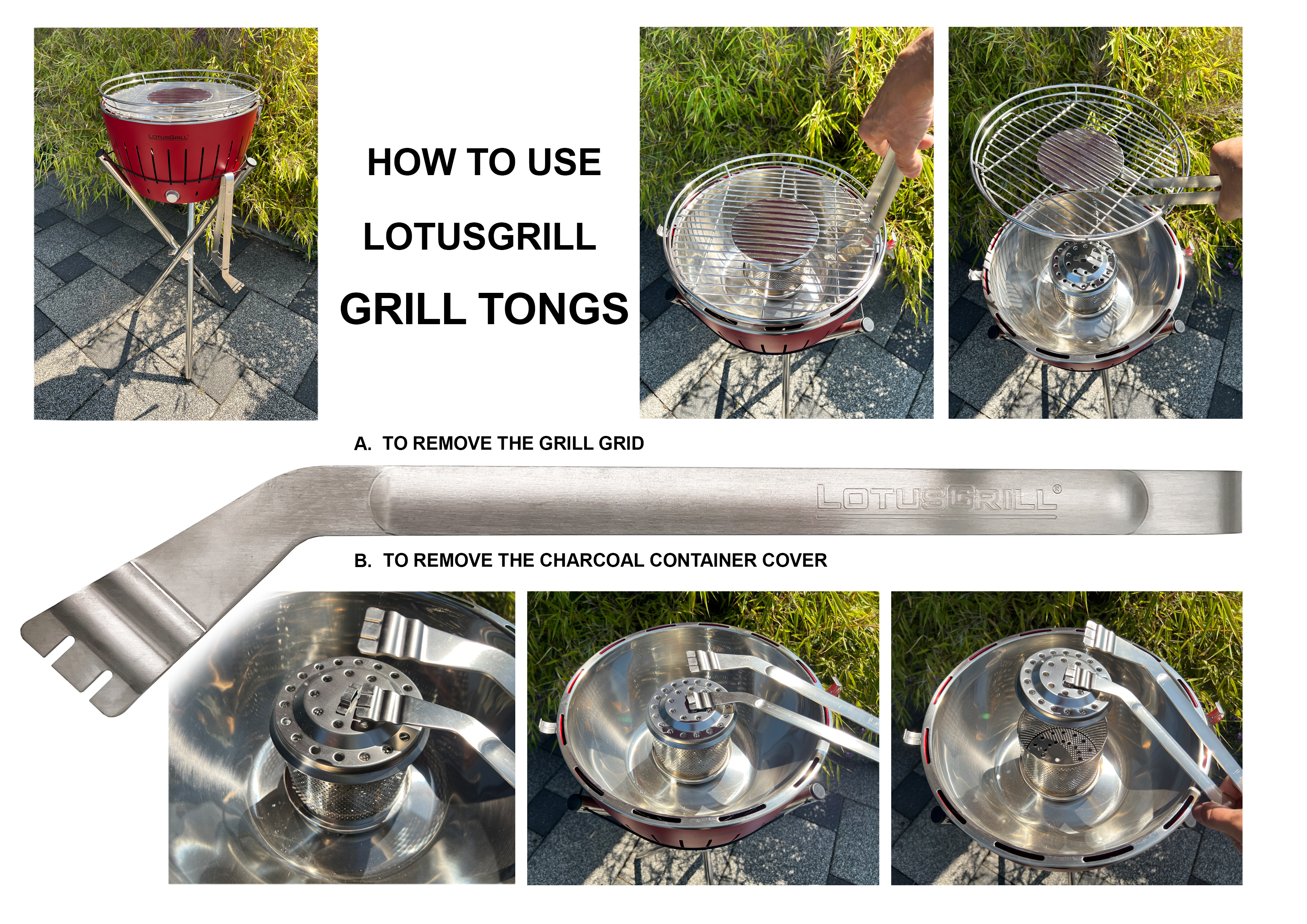 Die LotusGrill Grillzange aus Edelstahl wurde speziell für die Verwendung mit einem LotusGrill entwickelt.