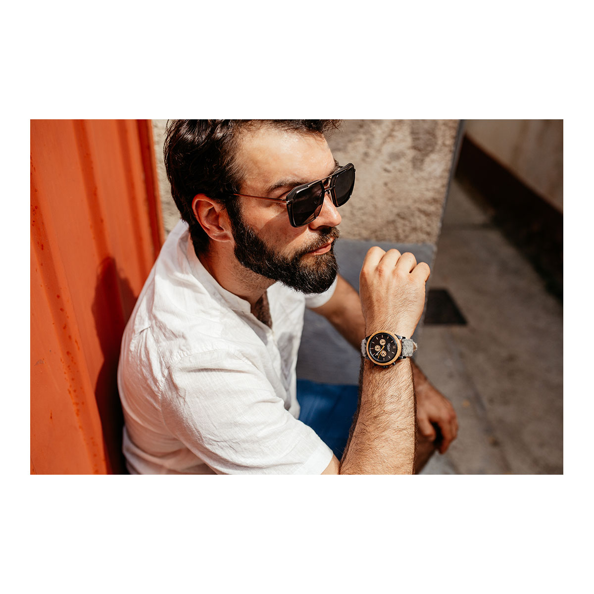Der Whisky Chronograph Scotts Highland erinnert mit seiner erdigen Farbgebung an die Moore der schottischen Hochlands.