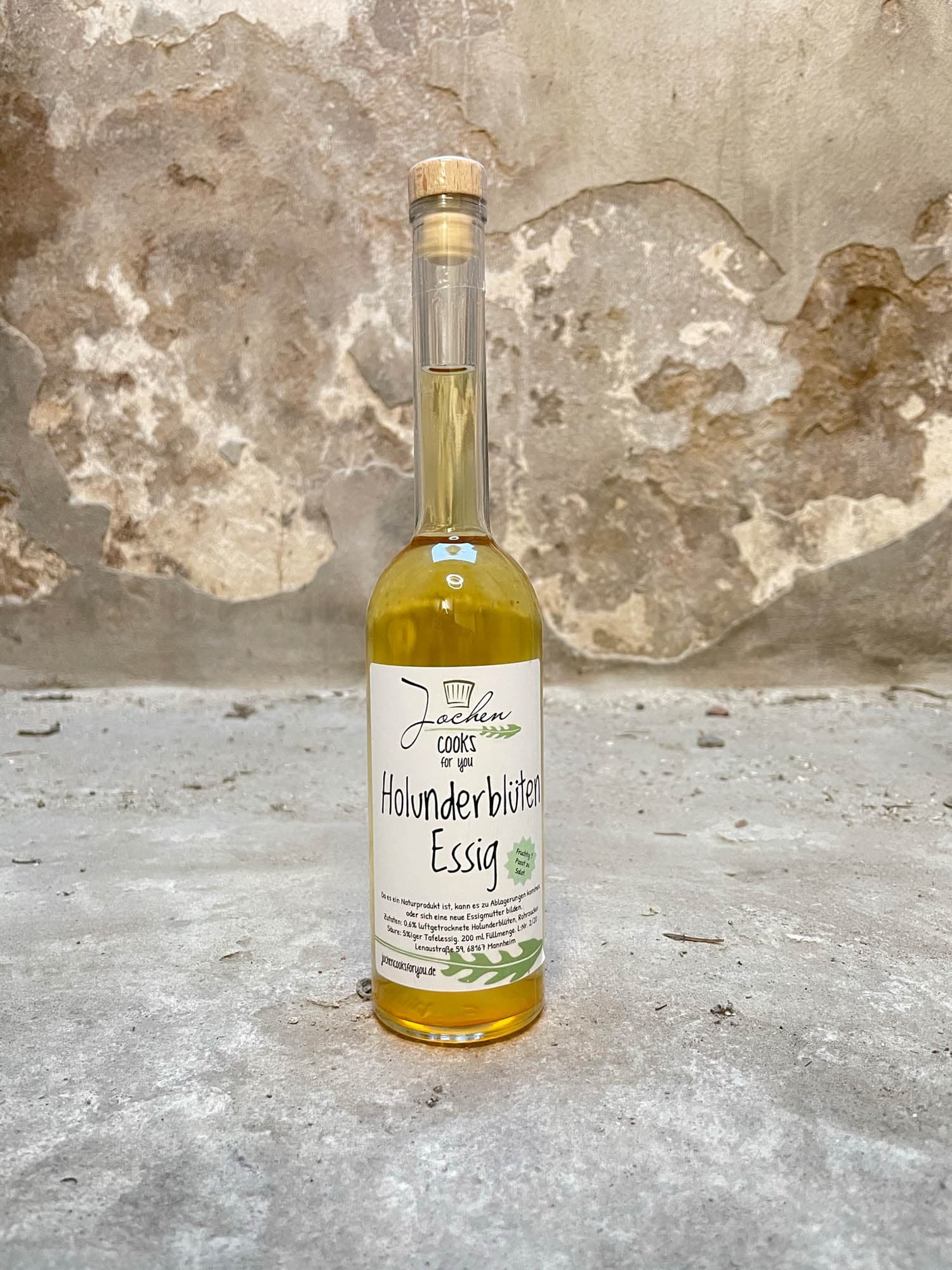 Zutaten: 5 % Holunderblüte, Tafelessig mit 5 % Säure, Rohrzucker