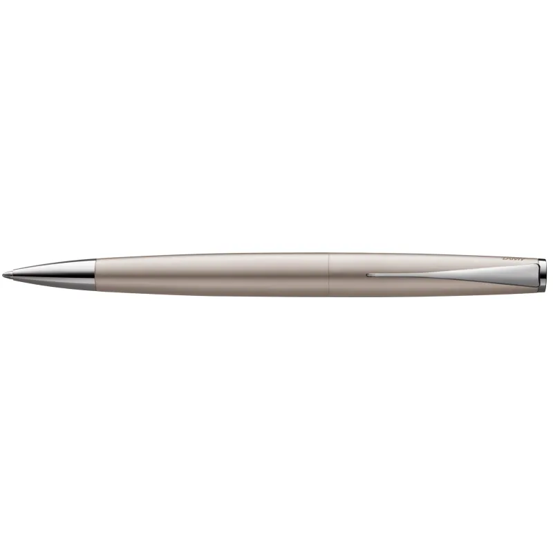 Der LAMY studio überzeugt mit zeitloser Eleganz und universellem Design. Die bauchige Zylinderform seines Körpers aus Ganzmetall ergibt sich nahtlos aus den einzelnen Gehäuseteilen und ist dabei bewusst minimalistisch gehalten. Die sanfte Wölbung und die harmonischen Proportionen machen den Clip zum Markenzeichen des LAMY studio: Er setzt der sachlichen Grundform einen innovativen gestalterischen Akzent entgegen und erzeugt ein einzigartiges Gesamtbild.