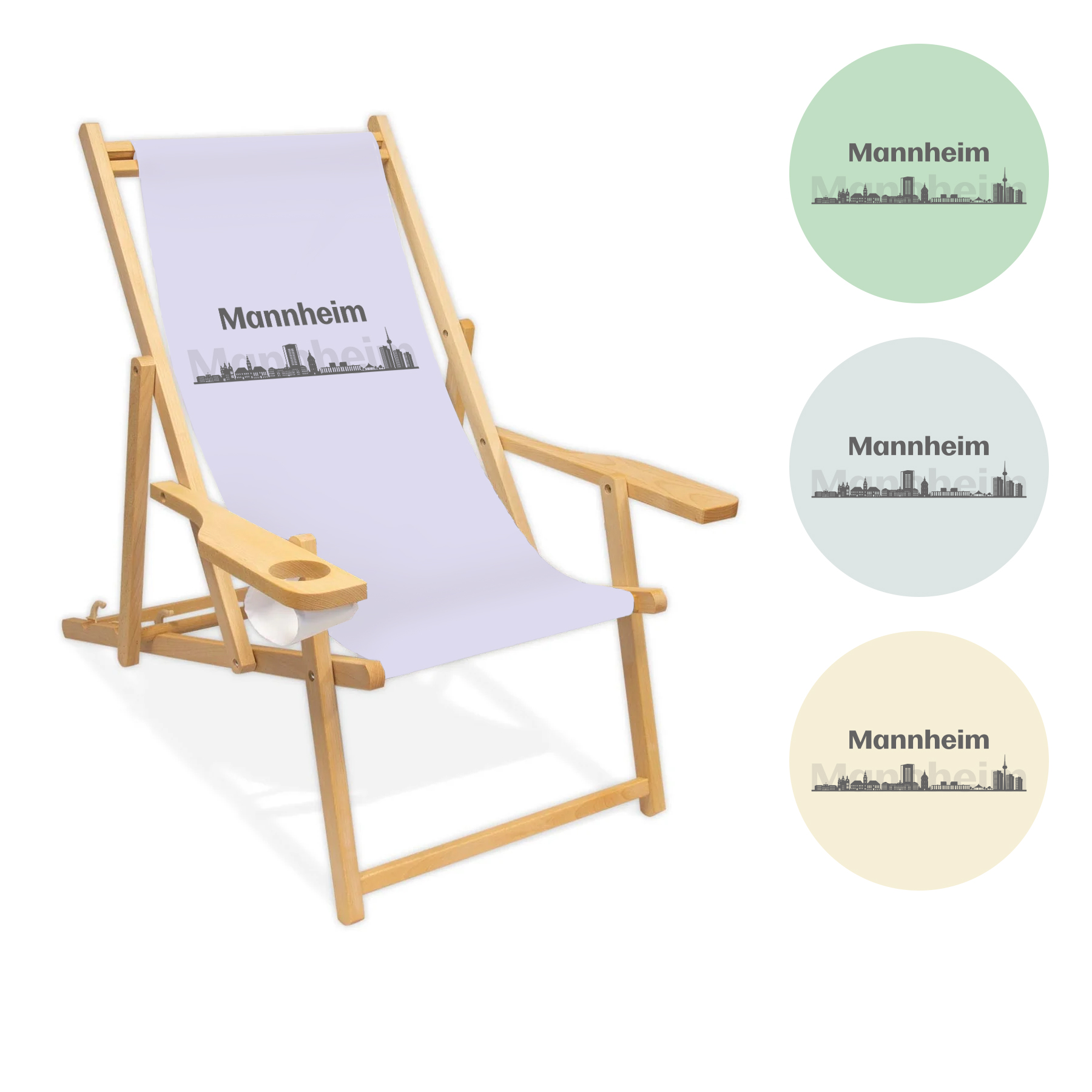 Liegestuhl Skyline Mannheim mit grauer Schrift