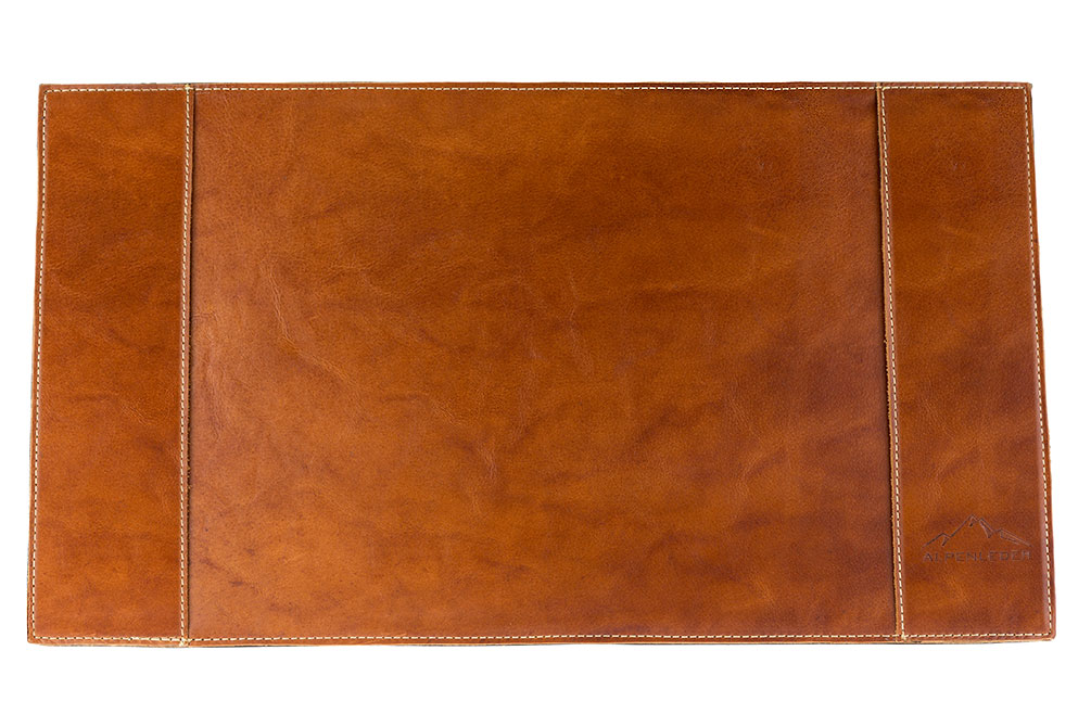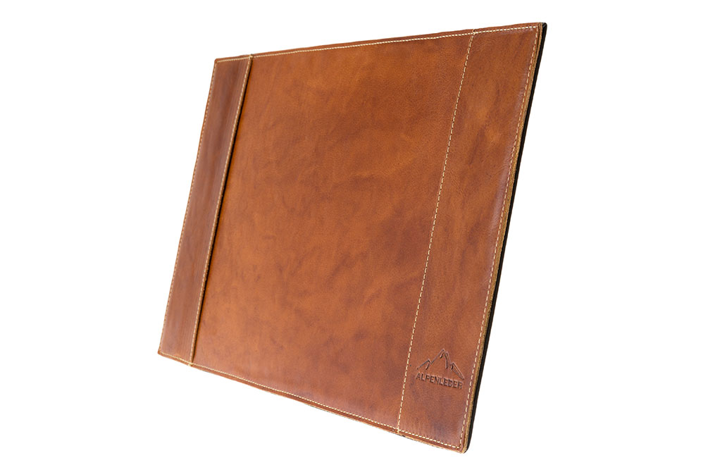 Für die perfekte Schreibtisch-Ausstattung darf die Schreibunterlage von Alpenleder nicht fehlen. Denn Dank ihrer klaren Formsprache integriert sie sich fast nahtlos in ihrem Umfeld und ist trotzdem ein Blickfang. Die beidseitigen Steckfächer unterstützen Sie bei der Organisation Ihres Alltages.