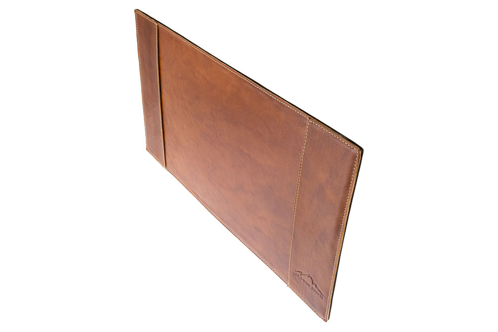 TIROL wird aus einem Stück Büffelkalbleder gefertigt. Dieses wird rein vegetabil gegerbt und mit pflanzlichen Ölen veredelt. Die massive Lederdicke von 1,8 bis 2,2 mm (farbabhängig) verleihen der Schreibunterlage eine geschmeidige Stabilität und Langlebigkeit. Die Unterseite ist aus rutschfestem Wildleder. Die Schreibunterlage TIROL wird in Handarbeit gefertigt und ist in fünf Lederfarben mit Kontrastnaht erhältlich.