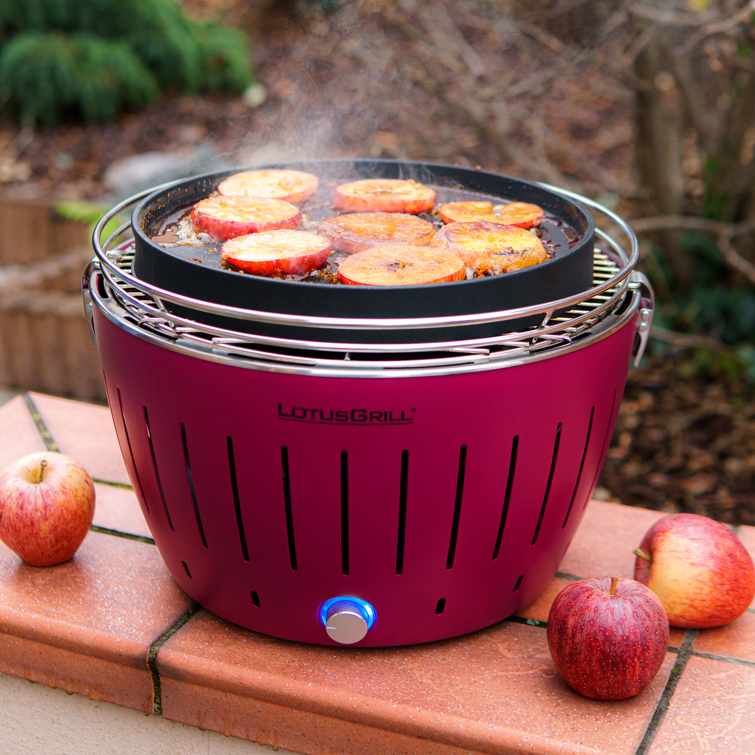 Sie ist sowohl mit, als auch ohne LotusGrill Grillhaube einsetzbar.