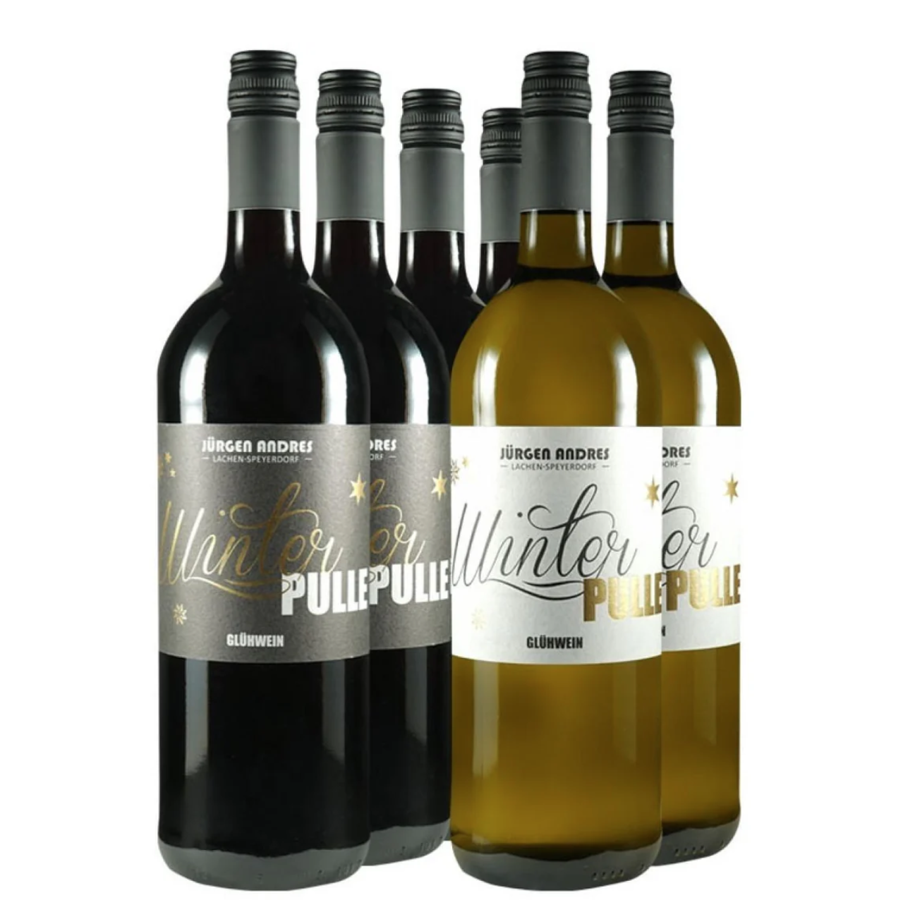 Mit dem Winterpulle Glühwein-Paket Rot & Weiß genießen Sie gleich zwei Highlights aus der Pfalz: einen kräftigen roten Glühwein aus Dornfelder-Trauben und einen fruchtig-leichten weißen Glühwein aus Müller-Thurgau. Beide stammen aus eigener Herstellung des Weinhaus Andres und stehen für authentischen Winzerglühwein – handgemacht, vegan und mehrfach prämiert.